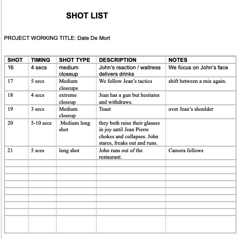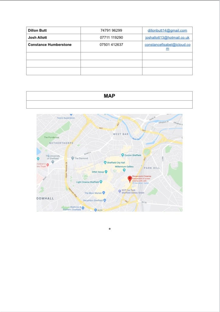 On the contrary though, the last date we had together as a team in which we could all speak in person before the shoot, half of our team was missing due to illnesses and other changes. This meeting was held so that we could all agree about the shot list and any last minute changes.
